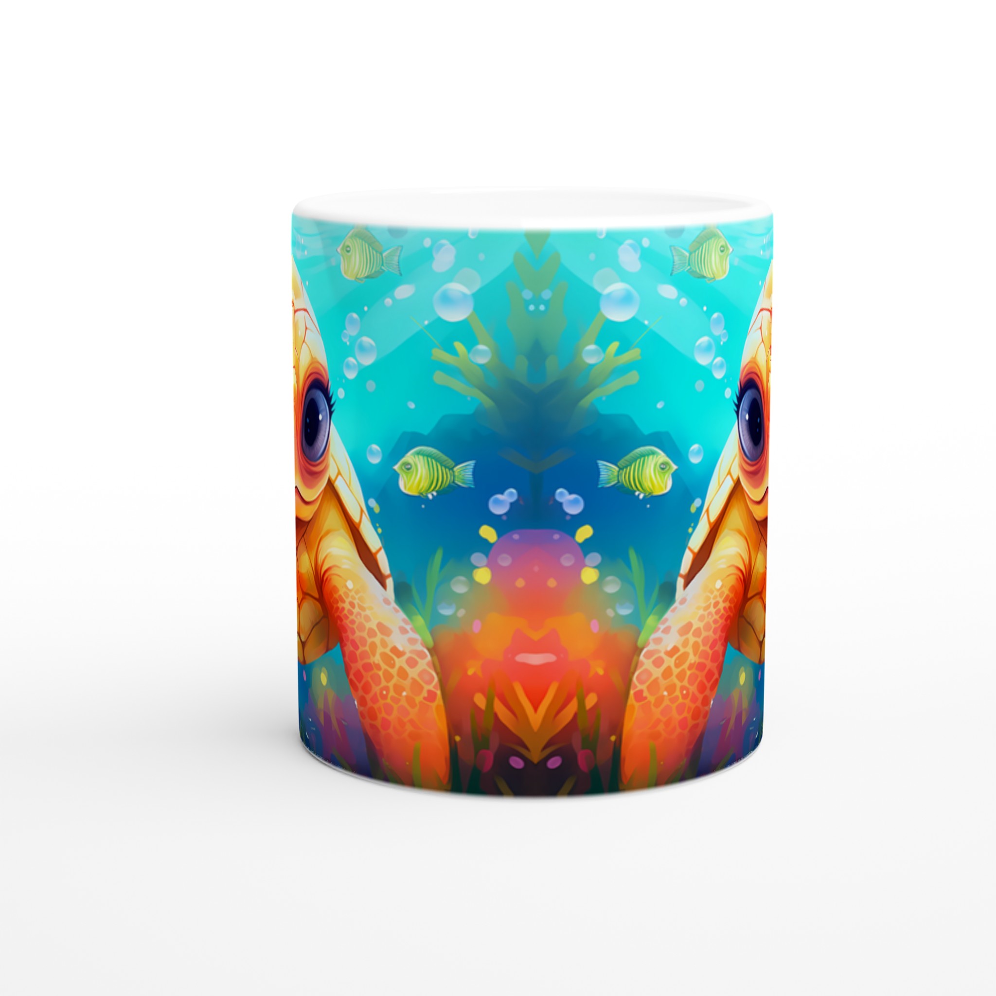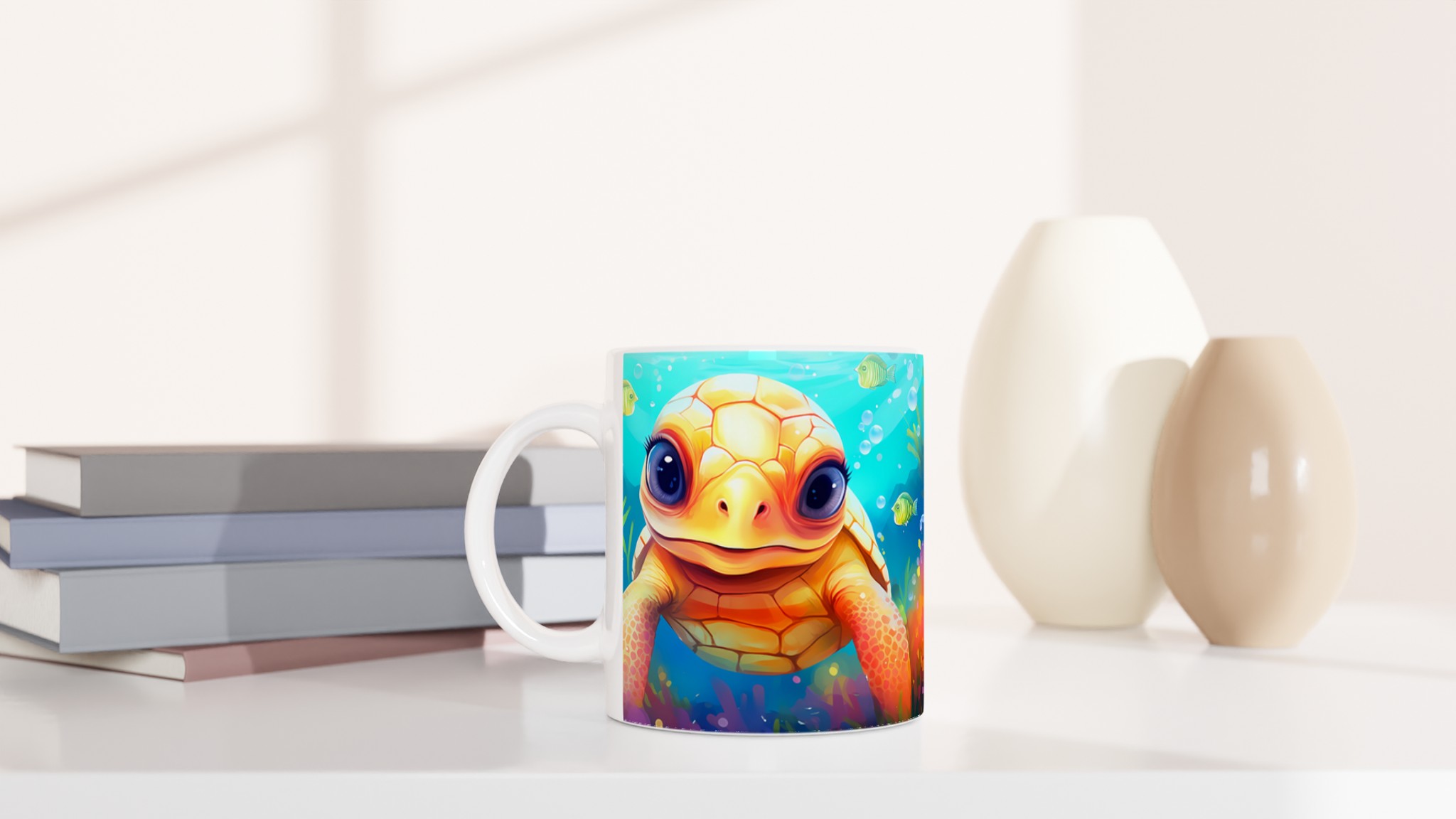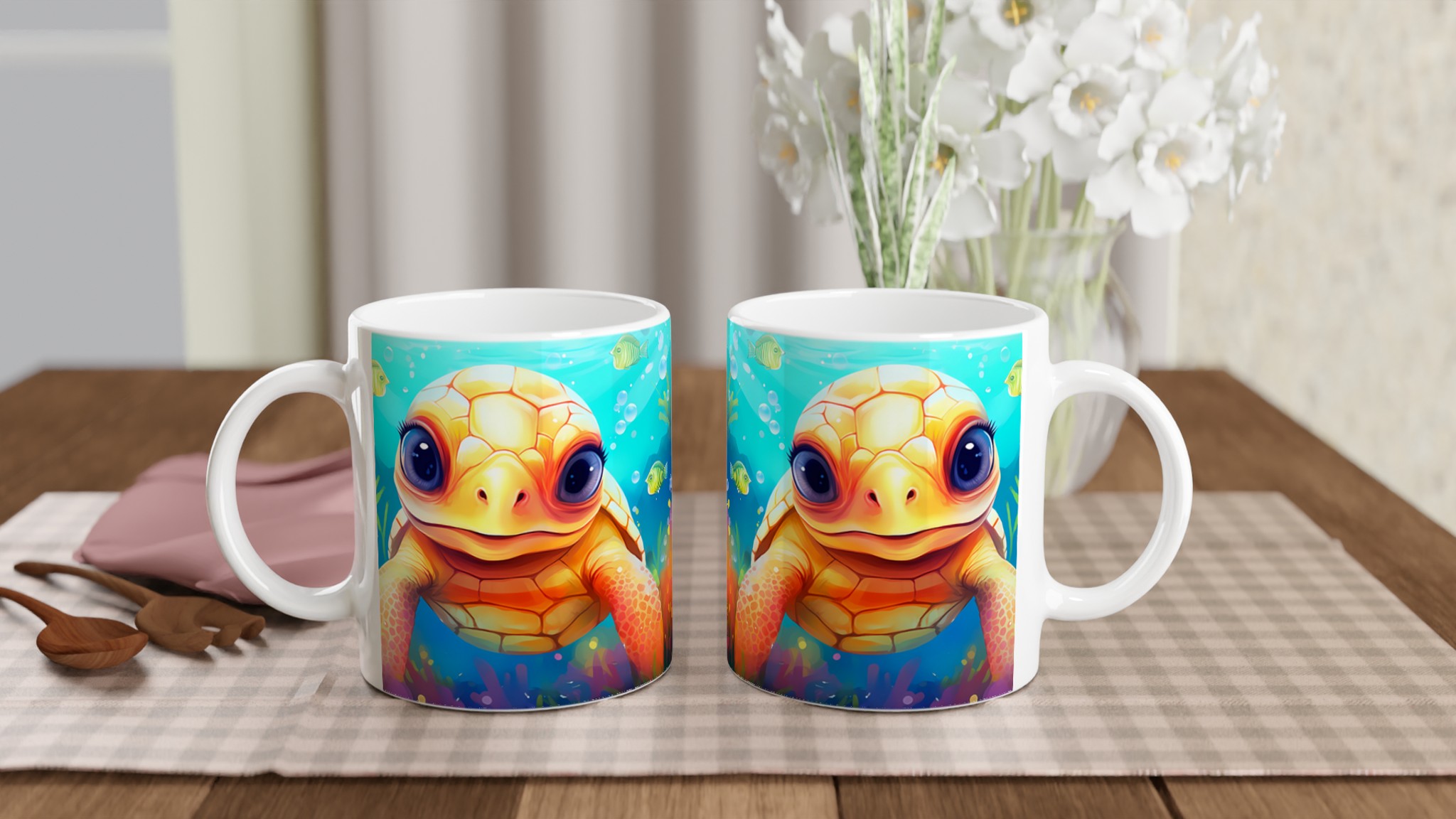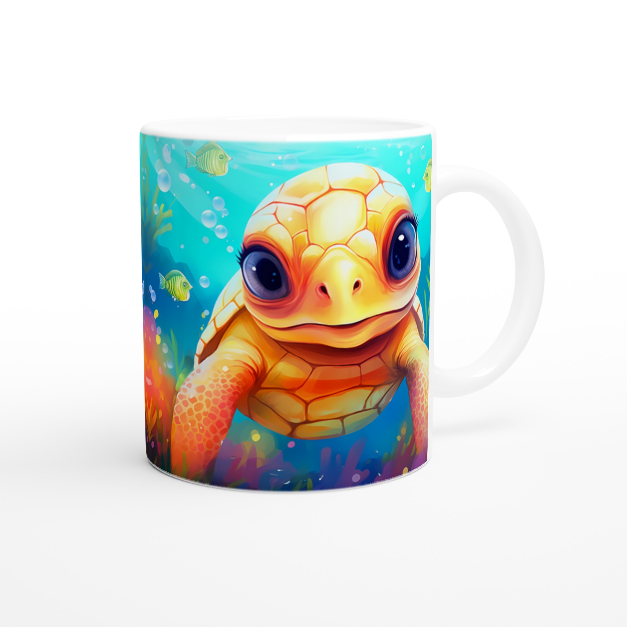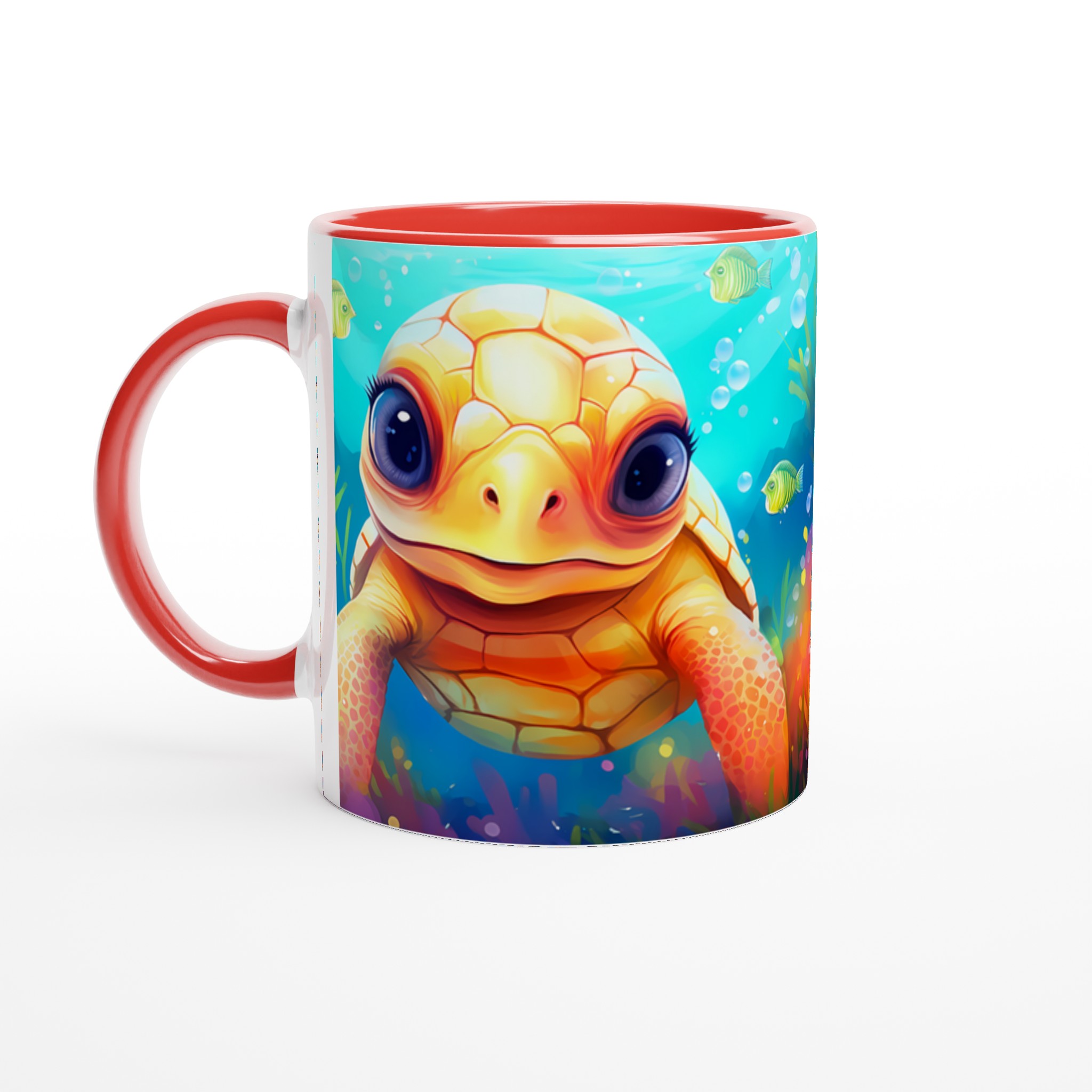 Charming Baby Sea Turtle – Vibrant Ceramic Mug 11oz in Your Choice of Seven Ocean Hues